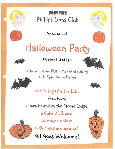 Join the Phillips Lions Club for their annual Halloween Party
